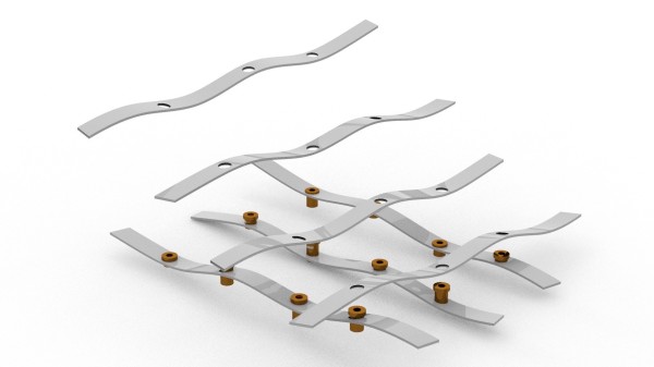 Basierend auf dem Prinzip des Hebelstabwerks werden selbsttragende Strukturen entwickelt und mit einem stabilisierenden Verbindungsdetail gesichert.