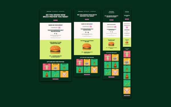 The complex and dry information is presented in a simple and engaging manner. Users playfully learn about the production process, environmental impacts, and nutritional value of each protein, while remaining actively involved throughout.