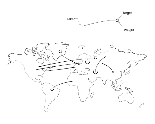 Diese Art von Heatmap würde die Strecken der Bomberflugzeuge anzeigen, jedoch wäre das zu unübersichtlich und es fehlten zudem einige Daten, um dies sinnvoll umzusetzen.