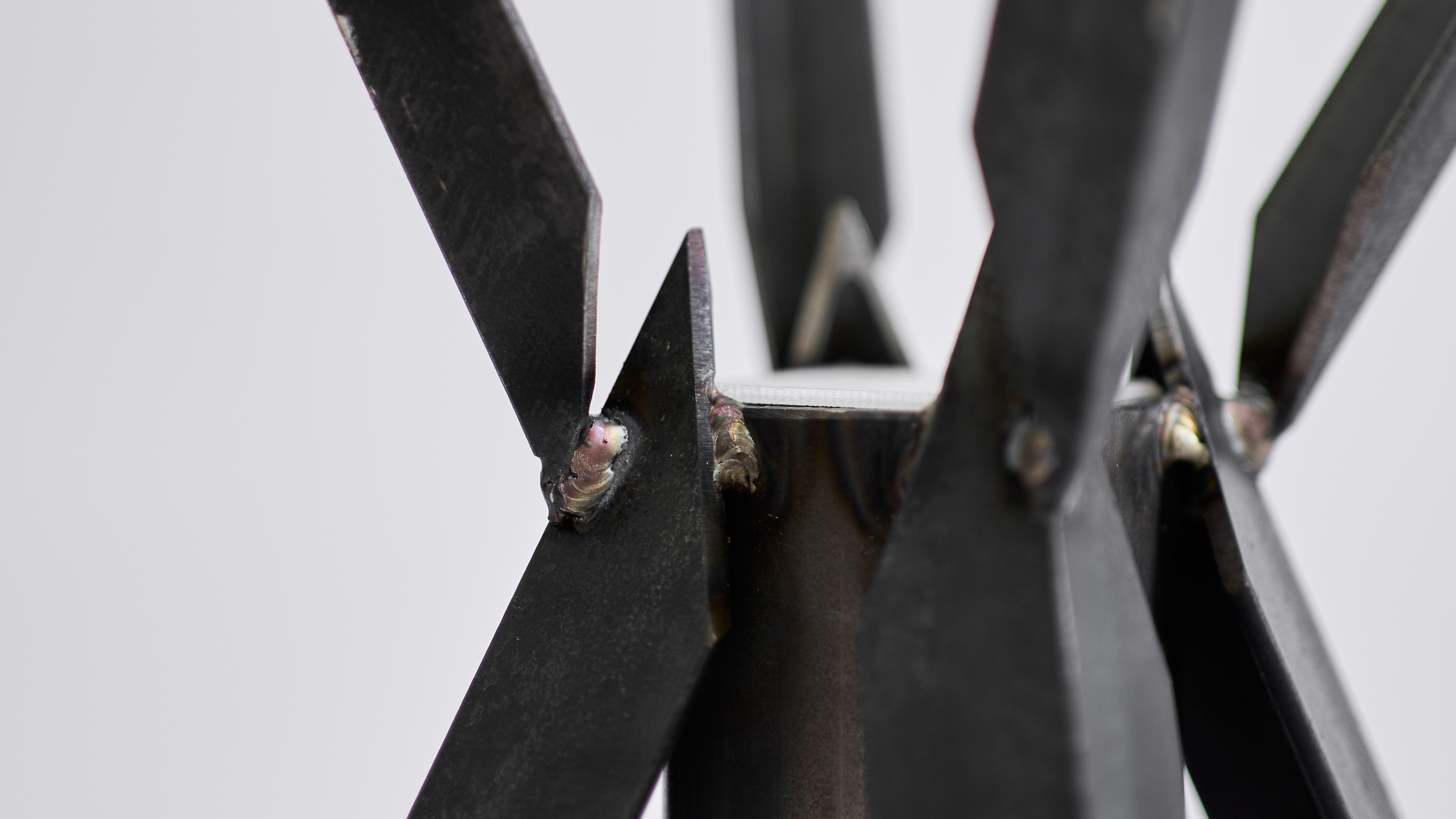 The choice of the material reinforces this aggressive character. Cold, rigid metal was deliberately selected for its association with strength, hardness, and even danger. The industrial feel of the metal surface mirrors the raw, unrefined emotion behind aggression. The production process itself cutting, bending, and assembling metal further emphasizes the sense of force and resistance inherent in the concept.