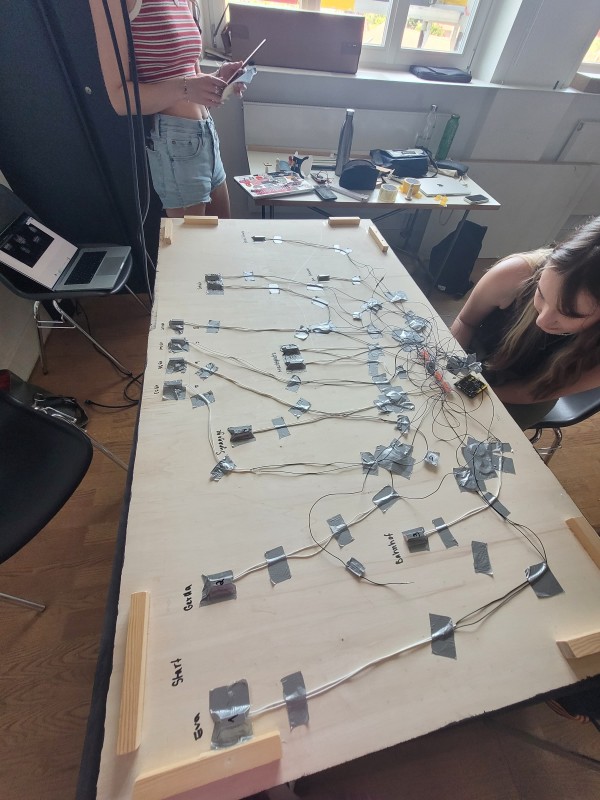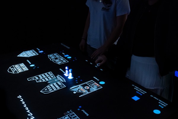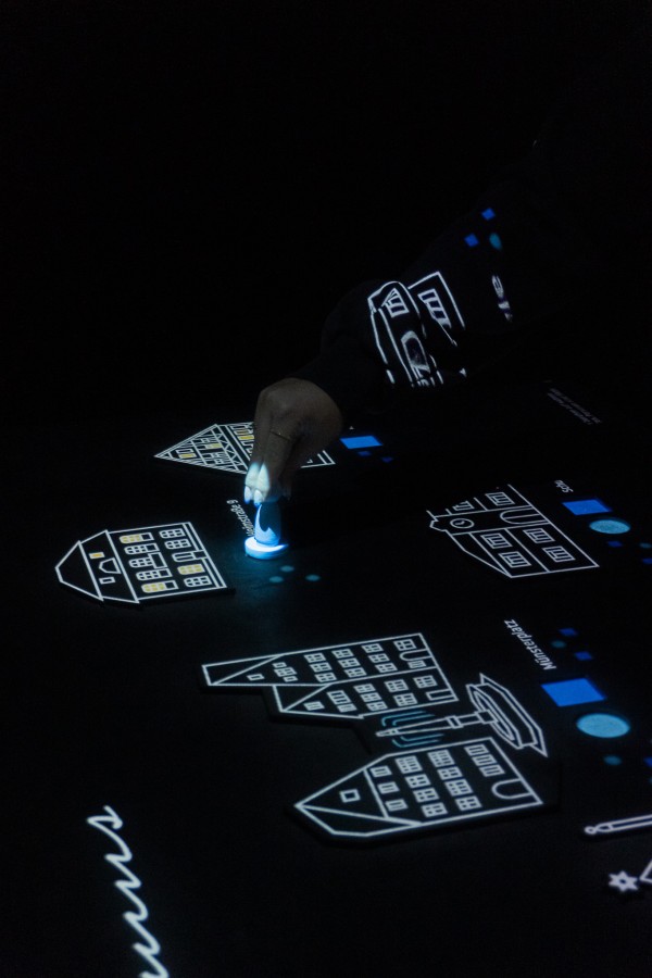 Technisch realisiert wird das Projekt durch ein Arduino-Leonardo-System mit Reedkontakten. Die Magnete in den Figuren und im Slider für die Jahre lösen bei Platzierung automatisch digitale Eingaben aus, die in einer grafischen Oberfläche die passende Szene aufrufen. Jede Kombination aus Ort und Jahr entspricht einer eindeutigen Geschichte.