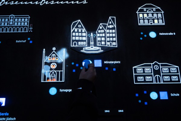 Das Exponat entstand in Zusammenarbeit mit dem Einstein Museum Ulm. In unserem interaktiven Ausstellungstück können Besucherinnen und Besucher die Jahre 1933, 1938, 1941 und 1945 aus der Perspektive zweier Jugendlicher im nationalsozialistischen Ulm erleben: Eva, ein jüdisches Mädchen, und Gerda, ihre nicht-jüdische Schulfreundin.