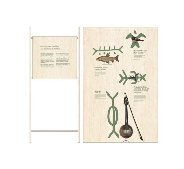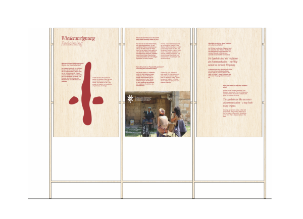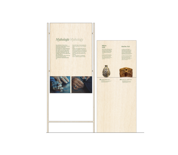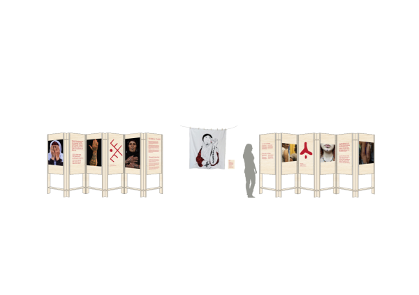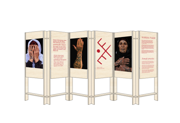 Die Gestaltung folgt einer klaren Formsprache mit bewusst gewählten Farben, traditionellen Symbolen und digitalen sowie analogen Medien. Mein Ziel ist es, ein sensibel gestaltetes Ausstellungserlebnis zu schaffen, das informiert, berührt und die Besucher:innen einlädt, eigene Fragen zu Herkunft, Körper und kulturellem Erbe zu stellen.