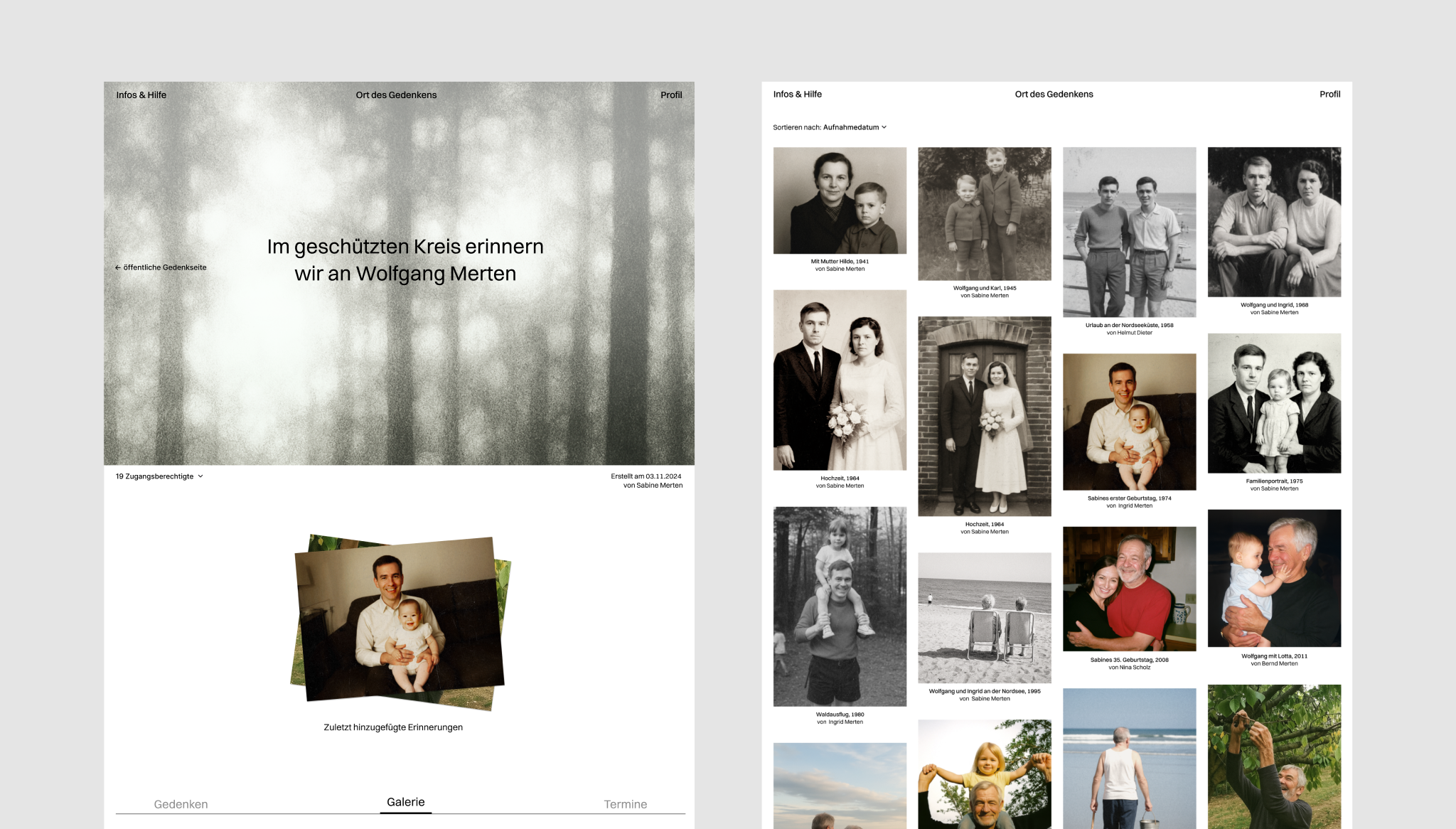 Personalisierung der privaten Gedenkseite