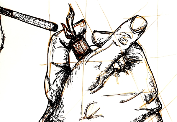 Für mein Storyboard habe ich das Thema Suchterkrankungen gewählt. Ein Thema, das viele betrifft, aber oft unter den Teppich gekehrt wird. Ich habe mich auf drei sehr verbreitete Süchte konzentriert: Alkohol, Nikotin und Tabletten. Die sieben Bilder zeigen keine typischen Alltagsszenen, sondern konzentrieren sich ganz auf eine einzelne Figur und ihre Handlung. Man sieht, wie der Mann sich eine Zigarette anzündet, raucht und sie anschließend ausdrückt. Danach hebt er ein Glas - auf dem Glas selbst ist die gewählte Information zu lesen. Schließlich nimmt er eine Tablette in den Mund und spült sie mit einem Schluck herunter.