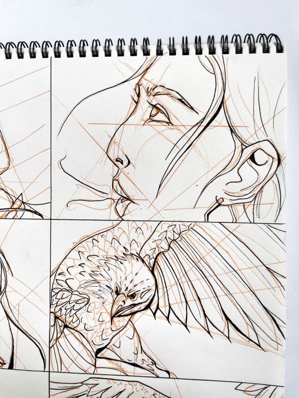 Die Aufgabe bestand darin, eine realistische Bildreihe aus 7 Zeichnungen im A3-Hochformat zu erstellen, die eine Momentaufnahme visualisiert. Ein Bild sollte größer sein und eine zweite Ebene mit typografisch gestalteten Zusatzinformationen enthalten.
