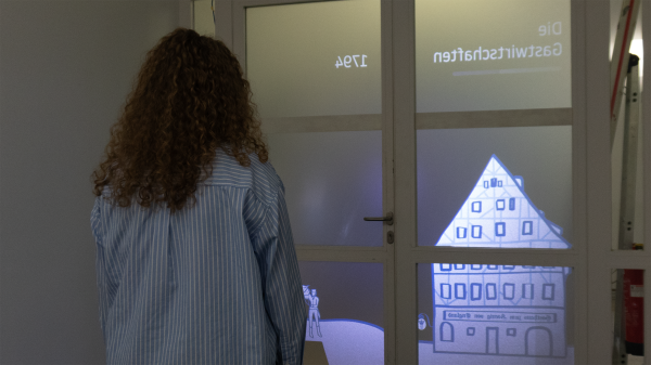 Im Kurs Exhibition Design / digitale Exponate hatten wir die Gelegenheit das Museum kennenzulernen und ein Konzept für ein neues Exponat zu erarbeiten. Wir entschieden uns, die Geschichte des Hauses selbst zu beleuchten und wählten als Ausstellungsort ein unbespieltes Fenster auf einer der Hauswände.