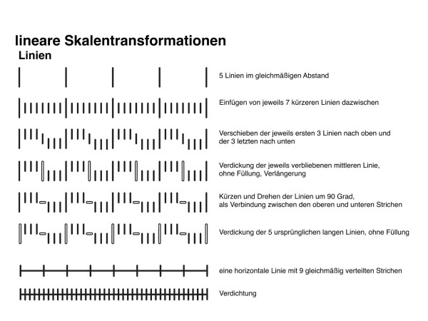 Durch systematisch aufeinander aufbauenden Übungen im “Bottom-Up” Prinzip, werden zunehmend komplexe morphologisch und kombinatorisch orientierte Zeichenoperationen anhand von Skalen und Störungen entwickelt und in syntaktischen und semantischen Bezugsfeldern untersucht. Beginnend mit analogen Handskizzen, über statische bis hin zu dynamischen Darstellungen.