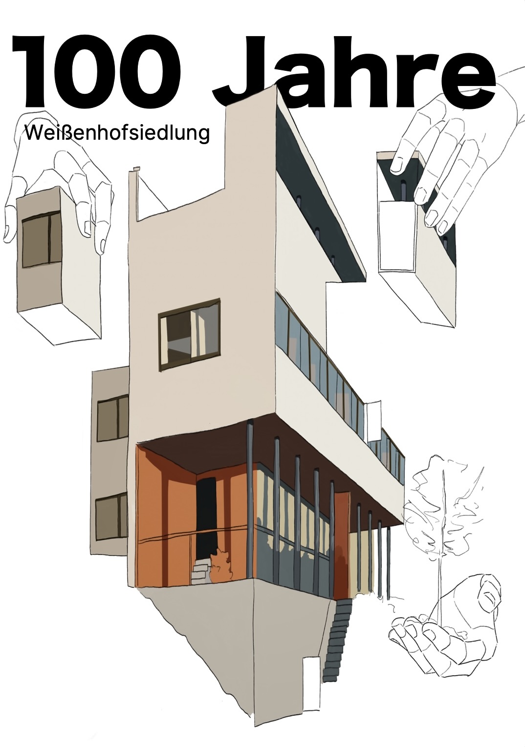 Im Rahmen der Aufgabe, ein Plakat zum 100-jährigen Jubiläum der Weißenhofsiedlung zu gestalten, wollte ich ein eigenes Narrativ entwickeln, das die Idee des modularen Bauens in den Mittelpunkt stellt.