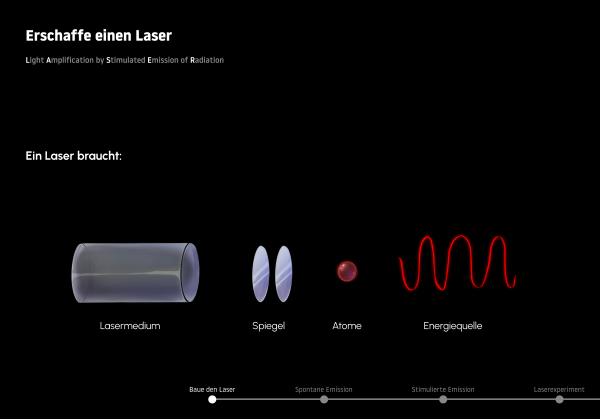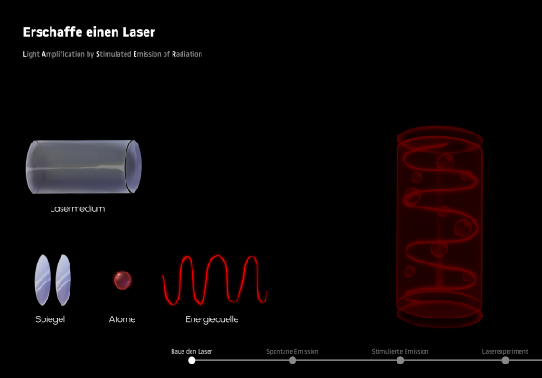 Albert Einstein hat mit der Entdeckung der stimulierten Emission eine zentrale Grundlage für die Entwicklung des Lasers geschaffen. Heute sind Laser aus unserem Alltag nicht mehr wegzudenken – ob in der Medizintechnik, Industrie oder Unterhaltung. In unserer Ausstellung erfährst du, wie die stimulierte Emission funktioniert und wie daraus ein gebündelter Laserstrahl entsteht. An einem interaktiven Experiment kannst du selbst einen Laser über Spiegel auf ein Prisma lenken und die Physik dahinter hautnah erleben.