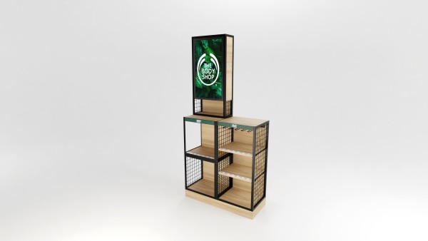 Das Display-Modul mit integriertem EMSU-Screen sorgt für Fernwirkung durch Bewegtbild und ermöglicht gezielte Retail Media Kommunikation – flexibel bespielbar und zentral steuerbar.