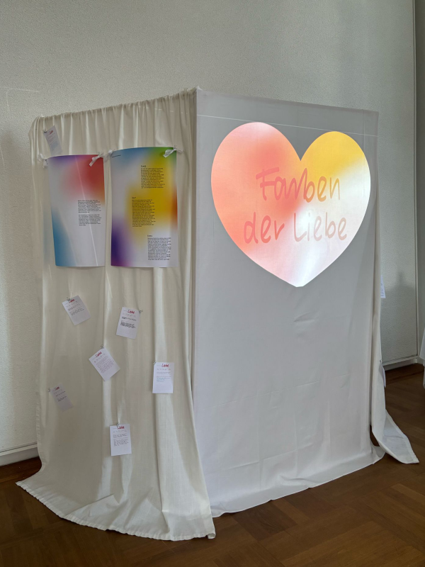 Unser Exponat thematisiert die Liebe. Sie ist vielschichtig und vielfältig – jeder verbindet etwas anderes mit ihr. Genau so ist es auch mit den Farben der Liebe. Hier in der westlichen Welt assoziieren wir die Liebe oft mit Rot, was jedoch nicht bedeutet, dass das die Farbe der Liebe ist. Mit unserer Ausstellung wollen wir dieses Klischee brechen und Besuchenden zeigen, wie vielfältig die Farbassoziationen zur Liebe in unterschiedlichen Kulturkreisen sind.