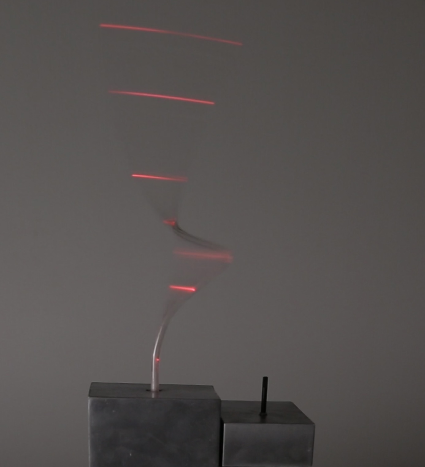 Our lamp expresses the theme “fast” through its form, color, and material. The pointed shape symbolizes dynamism and recalls light trails left by passing trains or cars. The rotating structure, combined with focused light, creates sharp beams that make movement visible. We chose transparent plexiglass as the material to highlight the light inside and enhance its visual effect. Silver represents a metallic, technical look, while the bold red emphasizes the energy and expressive power of motion.