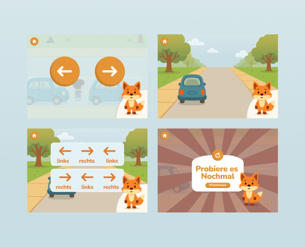 Besonderer Wert wurde auf spielerische Elemente gelegt: Mitmach-Spiele, Wiederholungen in Reimform und ein motivierendes Feedback-System schaffen eine lebendige Lernumgebung. So entsteht eine durchdachte Verbindung aus Gestaltung, Didaktik und Emotion. Die App übersetzt abstraktes Wissen in konkrete Handlungen und lässt Kinder selbst entdecken, ausprobieren und verstehen – ganz im eigenen Tempo.