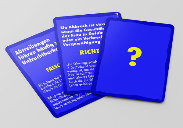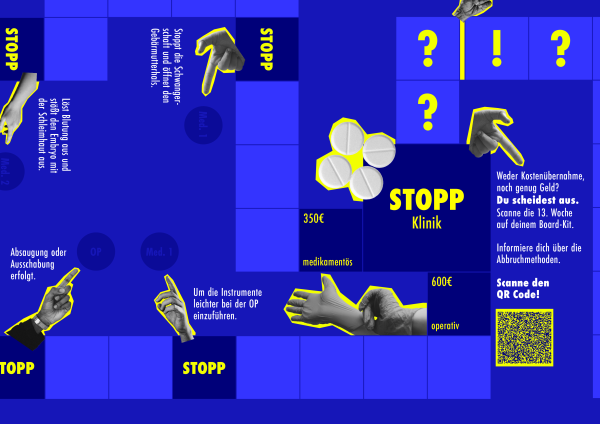 Ein individueller Kalender pro Spieler:in erhöht den Zeitdruck spielerisch, indem man die Schwangerschaftswoche beim Überqueren bestimmter Felder nach vorne verschieben muss – so wird die gesetzliche Frist greifbar gemacht.