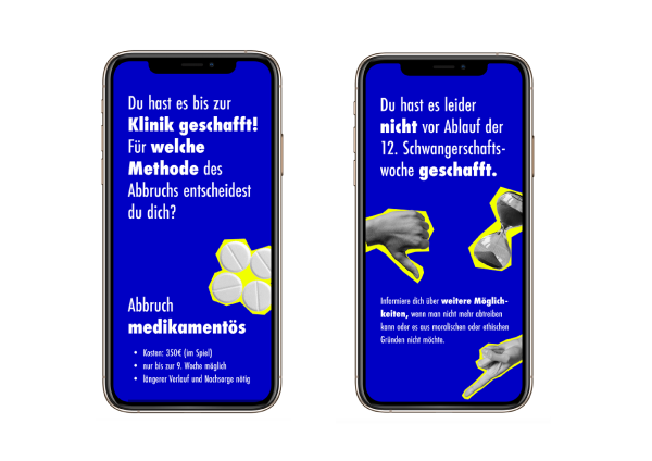 Im Fokus des Spiels stehen ausschließlich gewollte Schwangerschaftsabbrüche nach der gesetzlichen Beratungsregelung – medizinische oder kriminologische Indikationen werden bewusst ausgeklammert, um den Rahmen nicht zu überfrachten und sich auf gesellschaftlich relevante Aspekte zu konzentrieren. Ziel ist es, innerhalb der gesetzlich vorgeschriebenen Frist von 12 Wochen alle realitätsnahen Stationen und Hürden eines Abbruchs zu durchlaufen.