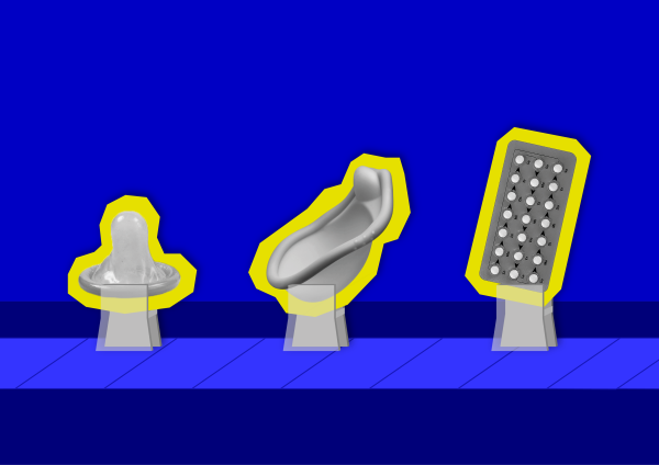 Die Spielfiguren stellen gescheiterte Verhütungsmittel dar (z. B. ein gerissenes Kondom), die auf die Grenzen der Empfängnisverhütung hinweisen und zusätzlich zur Aufklärung beitragen.