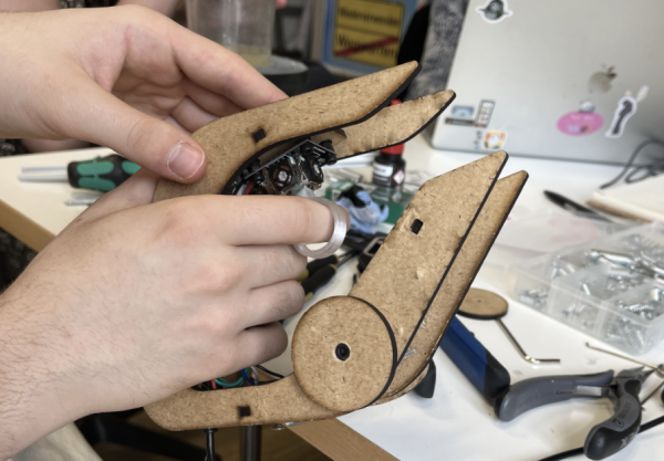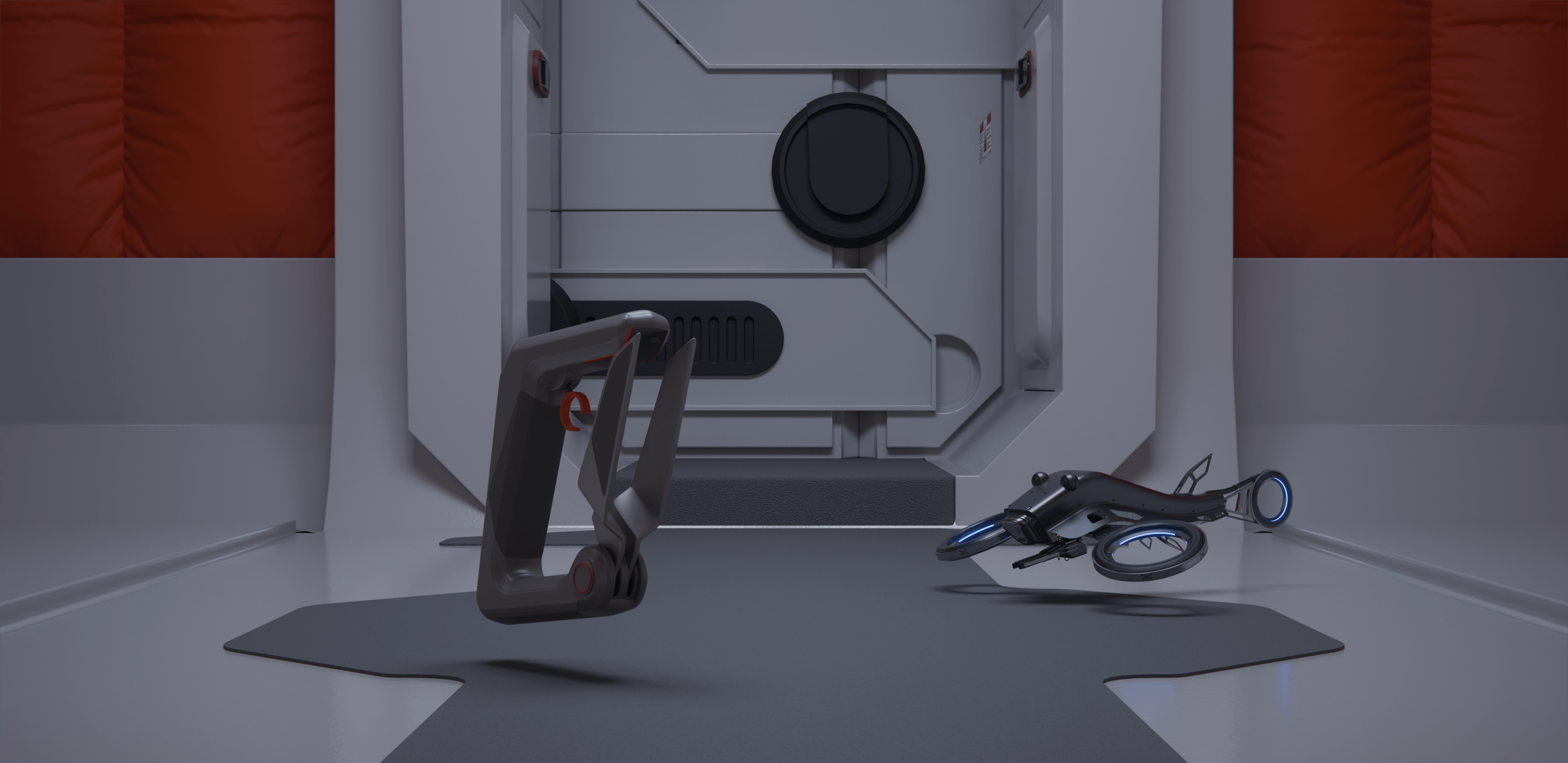 Im weiteren Verlauf kam die Idee auf, den hinteren Teil des Controllers nach unten klappbar zu gestalten. Diese Bewegung unterstützt die natürliche Handbewegung beim Greifen und vermittelt das Gefühl, den Greifarm direkt nach unten zu führen. Das sorgte für mehr Klarheit in der Bedienung und ein deutlich intuitiveres Nutzererlebnis.