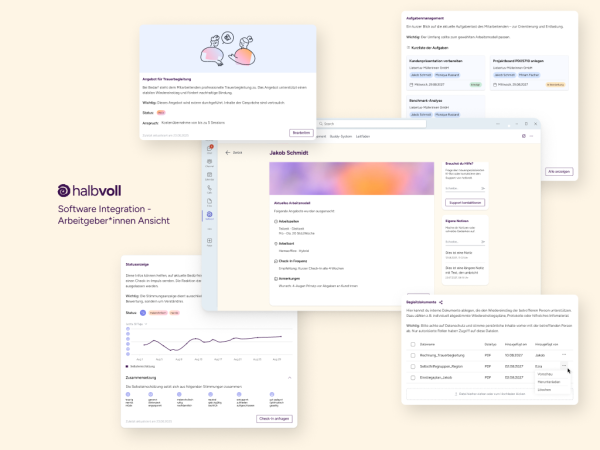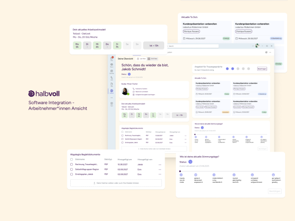 Software-Integration: Ein digitaler Begleiter innerhalb bestehender Kommunikationsplattformen wie Slack oder Teams, der sowohl Arbeitgeberinnen als auch Arbeitnehmerinnen unterstützt – mit Funktionen zur Organisation, Kommunikation und Entlastung.