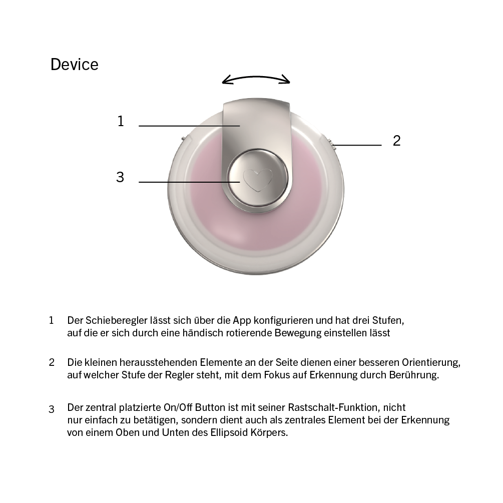 Ein ellipsen-förmiges Device welches, durch Aktivierung des Tasters