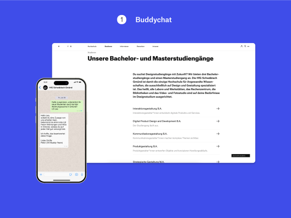 Ein direkter Zugang über den Chatbutton auf der Hochschul-Website ermöglicht Erstis unkomplizierten Erstkontakt mit einem Buddy.