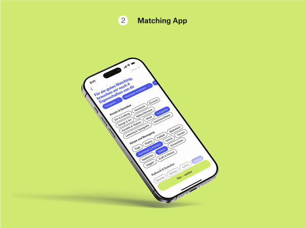 Die App erstellt Gruppen auf Grundlage gemeinsamer Interessen und unterstützt so nachhaltige, soziale Bindung – digital initiiert, analog erlebbar.