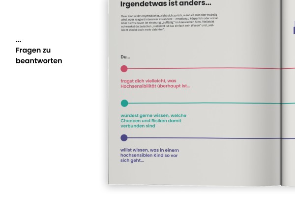 Aus dieser Beobachtung heraus entstand dieses Projekt: ein visuell gestaltetes Handbuch für Eltern und Bezugspersonen hochsensibler Kinder. Es soll dort helfen, wo Verunsicherung herrscht – mit klaren Informationen, anschaulichen Grafiken und einer Sprache, die ohne Vorkenntnisse funktioniert.