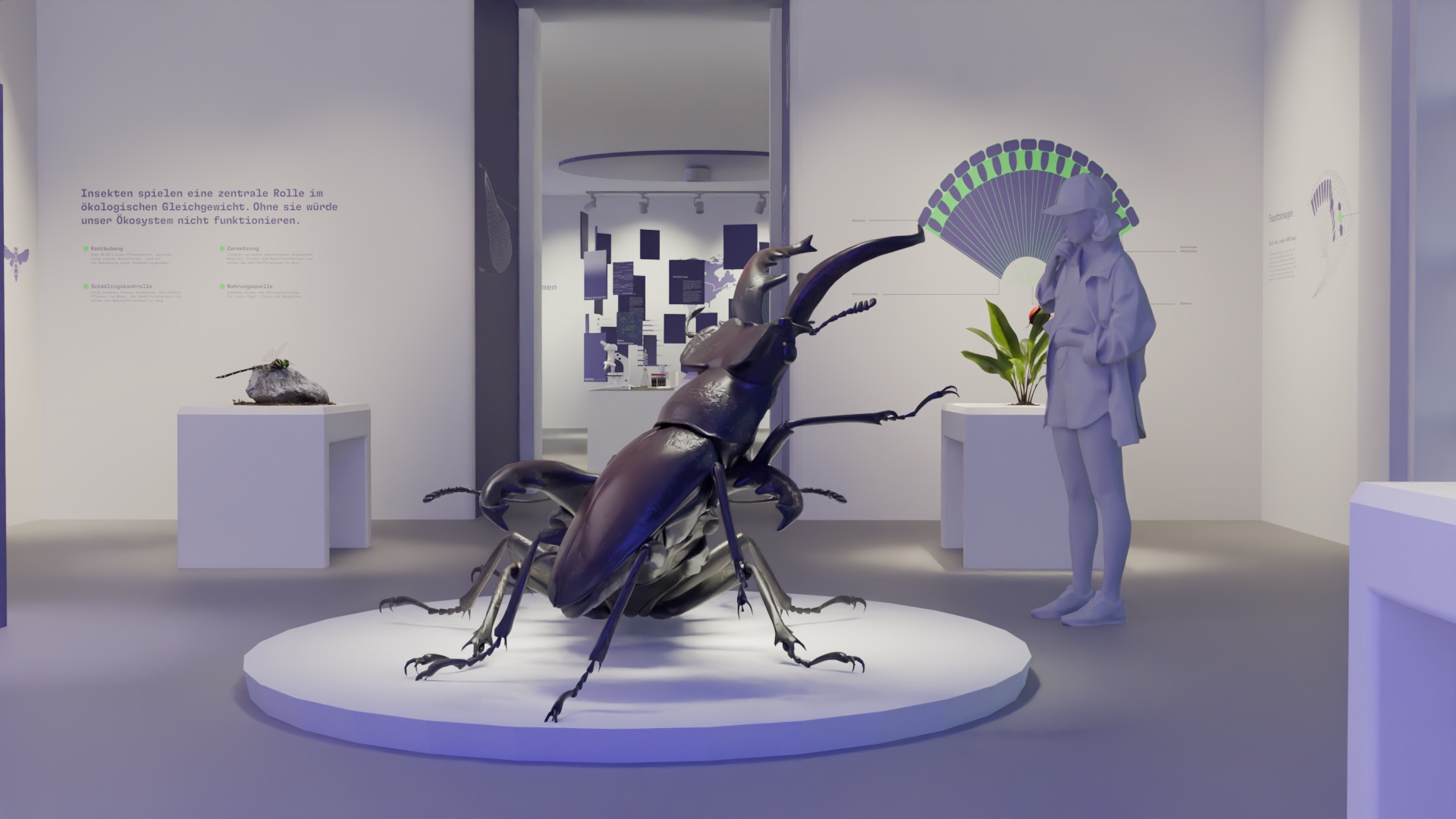 Für die Ausstellung entwickelten wir eine neu interpretierte entomologische Sammlung. Drehbare Insektenkästen ermöglichen eine interaktive Auseinandersetzung mit der Vielfalt und Ästhetik von Insekten. Besucher*innen können die Kästen eigenständig bewegen und so unterschiedliche Perspektiven auf die filigranen Präparate entdecken.