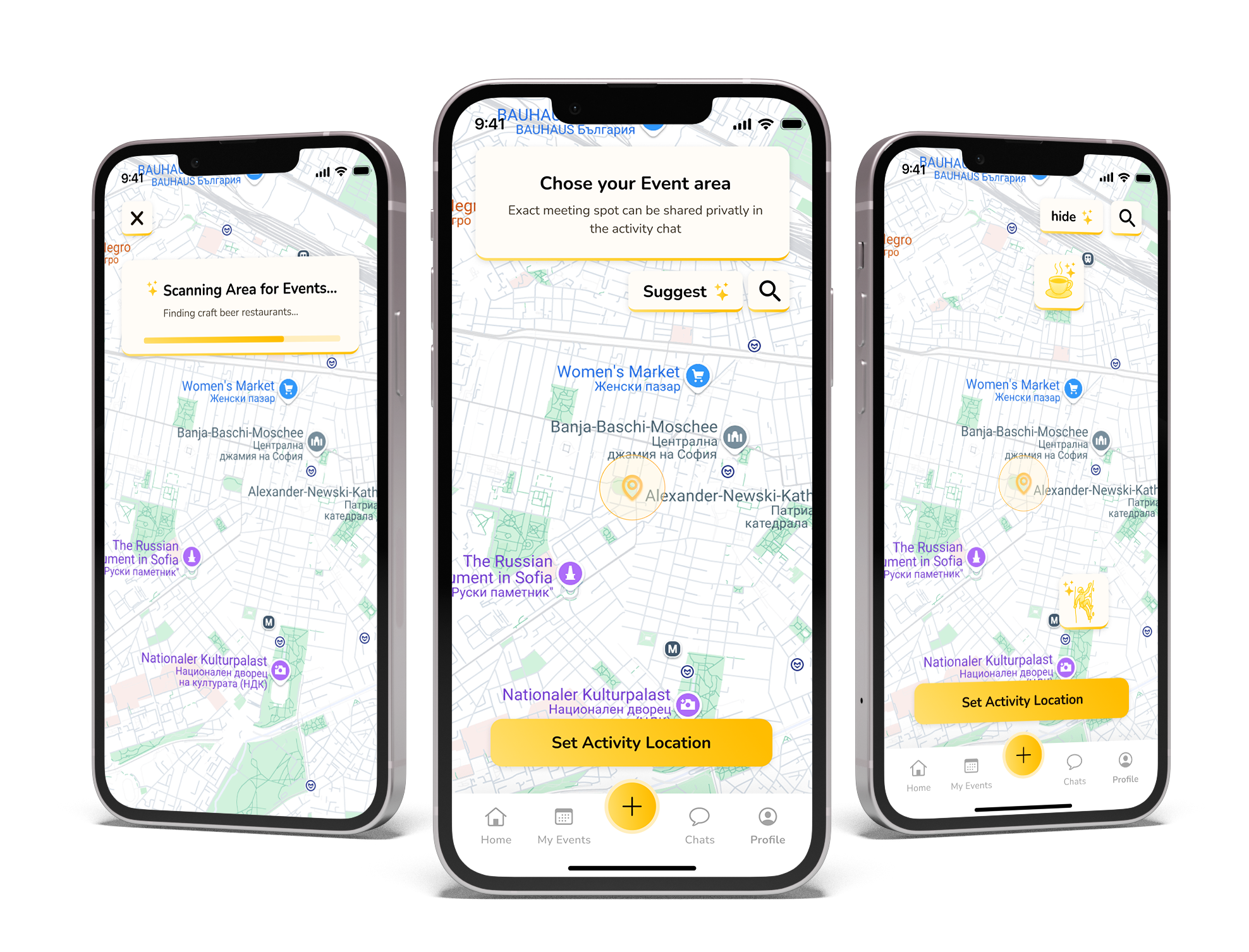 With an easy join system, users can quickly participate in events or create their own. Safety is a core feature: verified badges provide trust, and users can view profiles and chat with participants before the event — helping you feel confident about who you’re meeting.