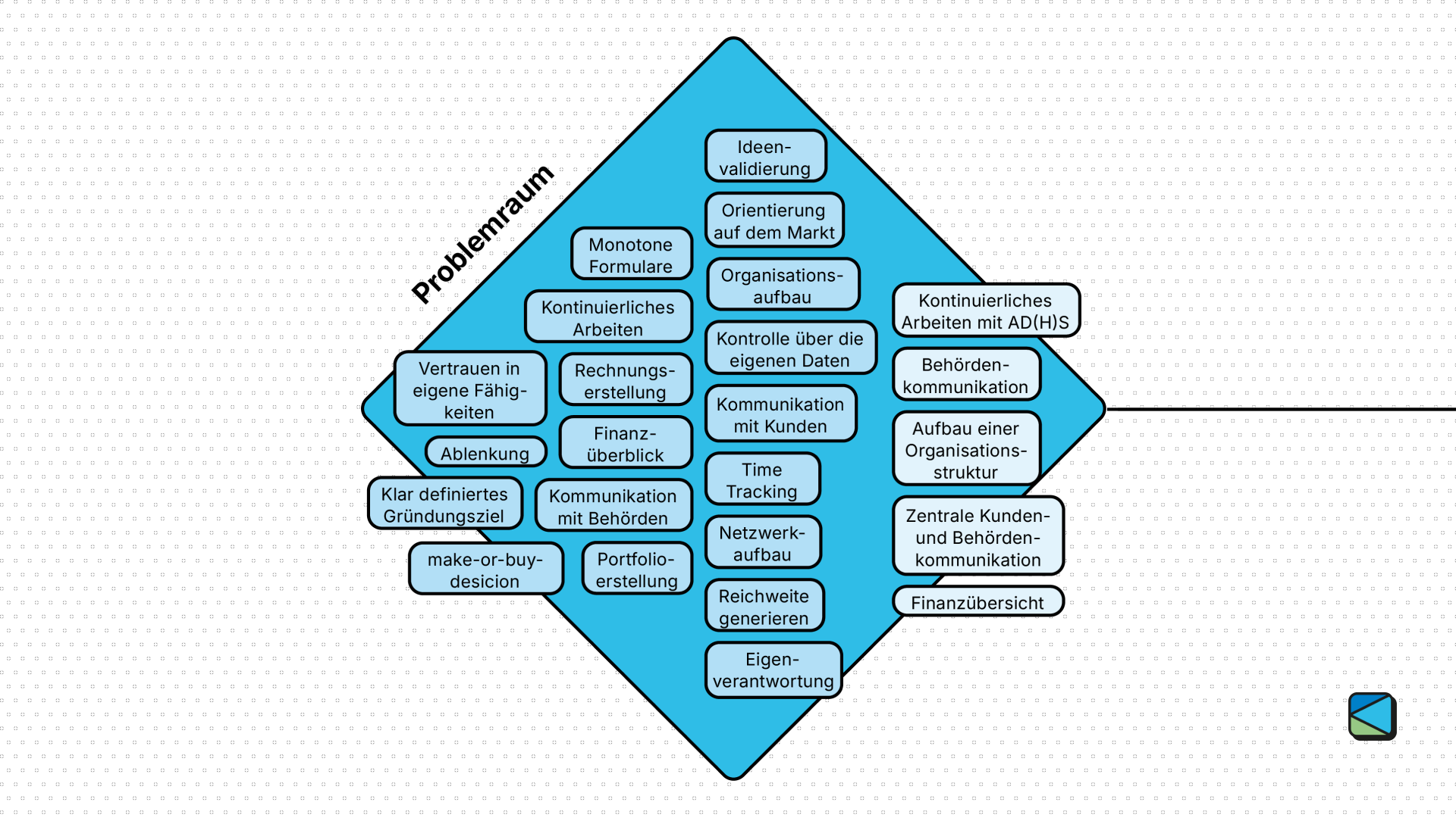 Visualisierung der identifizierten Problemfelder im Gründungsprozess