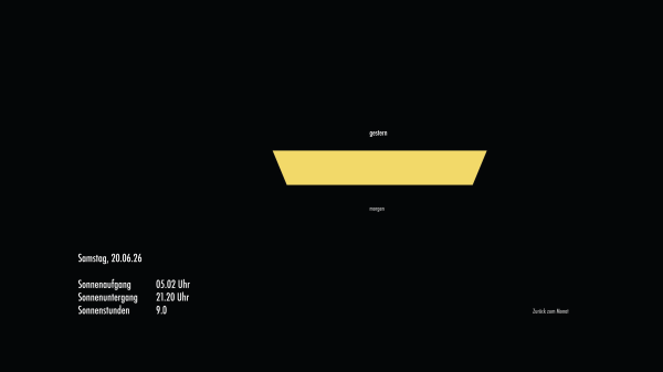 Entstanden ist eine radiale Komposition, bei der Farbabstufungen die Veränderung der Tageslänge über die Jahreszeiten hinweg sichtbar machen. Das Ergebnis wirkt auf den ersten Blick abstrakt, folgt aber einem klaren System. Wichtig war mir dabei, eine ruhige, minimalistische Bildsprache zu entwickeln, die nicht überlädt, sondern Orientierung bietet.