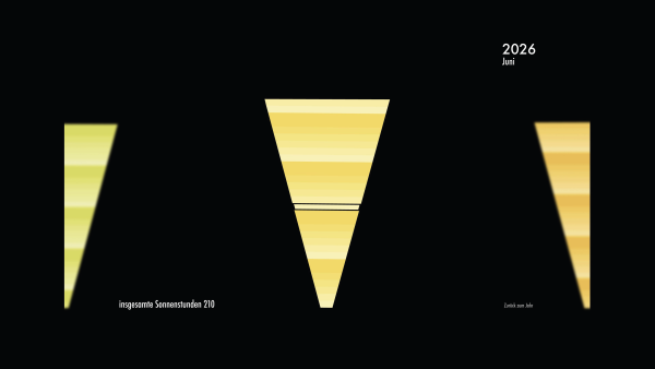 Genau das war die Herausforderung in diesem Projekt. Mein Ausgangspunkt war die Frage, wie ich den Ablauf eines Jahres allein durch Farbe und Form darstellen kann. Reduziert, aber trotzdem lesbar. Ich habe mich vom Prinzip der Sonnenuhr inspirieren lassen und das Thema Sonnenstunden in den Fokus gerückt.