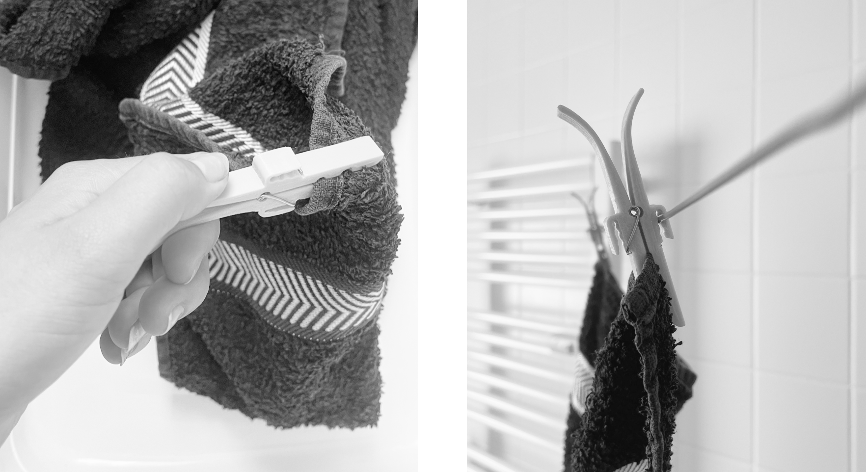 Das einhändige Aufhängen der Wäsche erfolgt in zwei Schritten: