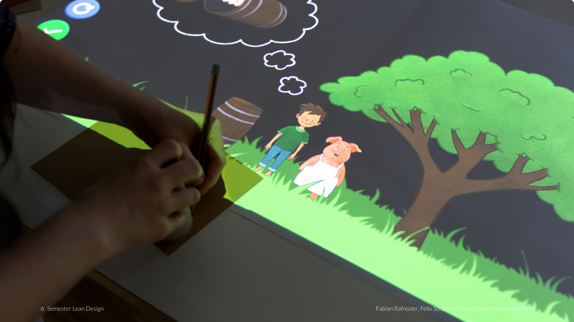 Lumi verbindet analoge kreative Tätigkeiten mit digitalen Erweiterungen und schafft eine neue Form des interaktiven Storytellings für Kinder. Das System nutzt Beamer-Projektion, um gezeichnete und gebastelte Objekte digital zum Leben zu erwecken und sie nahtlos in eine fortlaufende Geschichte zu integrieren.