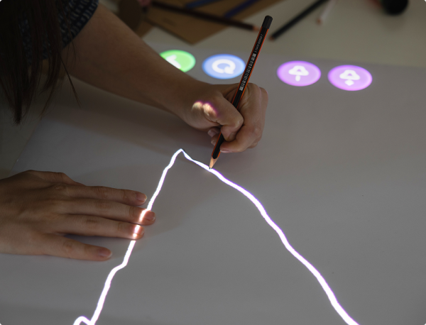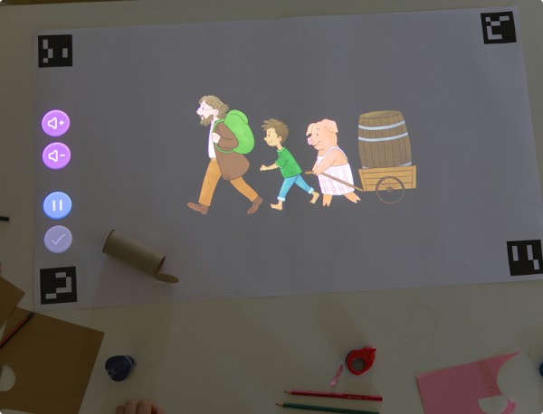 Das papierbasierte Steuerungssystem ermöglicht eine intuitive Bedienung: Durch spezielle Tracking-Marker auf dem Papier erkennt die integrierte Kamera automatisch, welche Geschichte gespielt werden soll, und aktiviert sich selbstständig. Kinder können so völlig eigenständig dort weitermachen, wo sie aufgehört haben. Sie müssen lediglich ihr bemaltes Papier auf den Tisch legen und Lumi setzt die Geschichte an der richtigen Stelle fort.