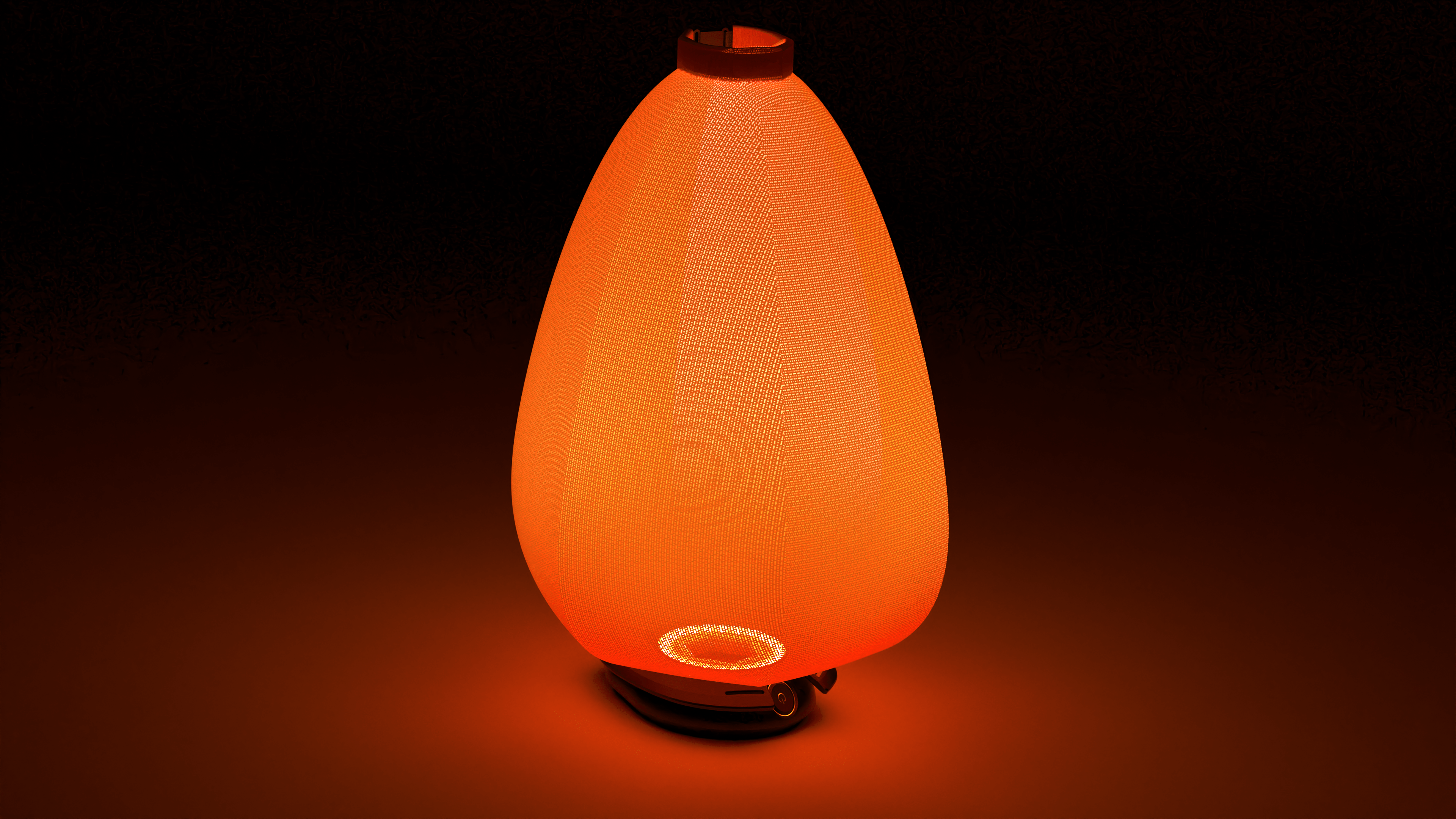 The following renderings demonstrate the two light modes of our outdoor light. In safety mode, the light provides clear, direct illumination to support orientation and visibility in outdoor environments. For ambient mode, the same light source is used, but a lampshade stored inside the housing can be taken out and inflated, creating a soft, voluminous shape that diffuses the light to produce a warm, comfortable atmosphere. This approach allows the product to switch seamlessly between functional safety lighting and an inviting ambient light, using one light source