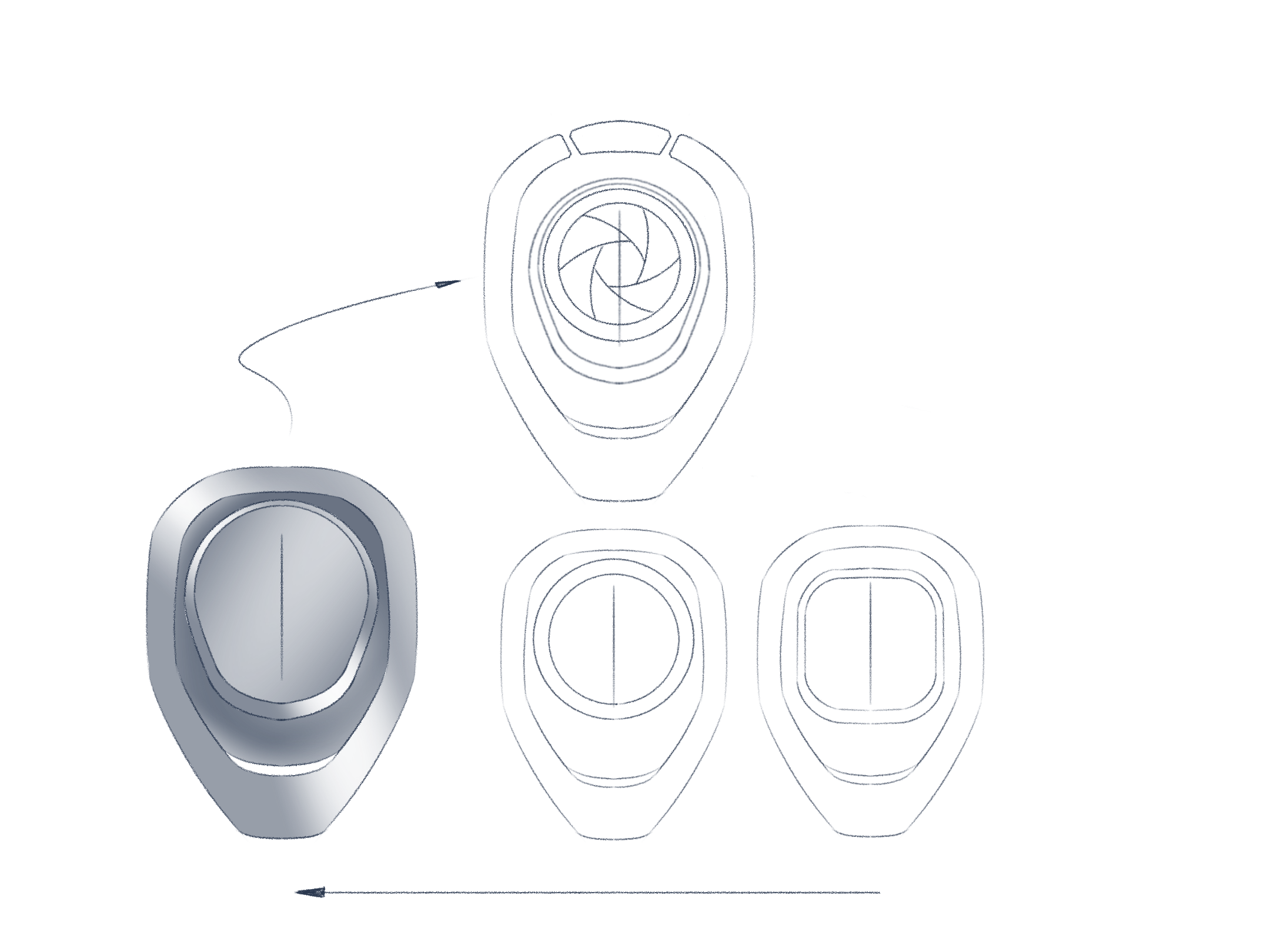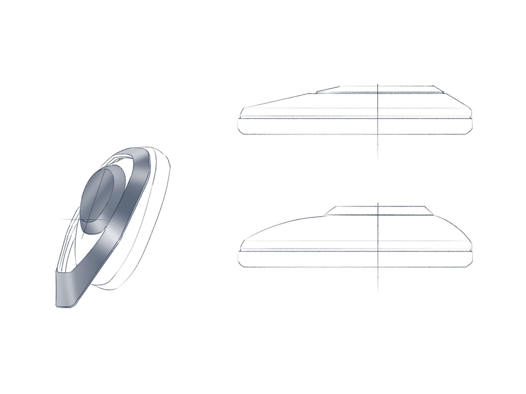 The initial sketches focused on the form and how the light can be comfortably worn on the body. We explored proportions, attachment possibilities, and the integration of curves to ensure the product feels natural while carrying and using it outdoors.