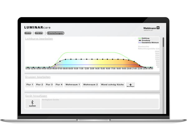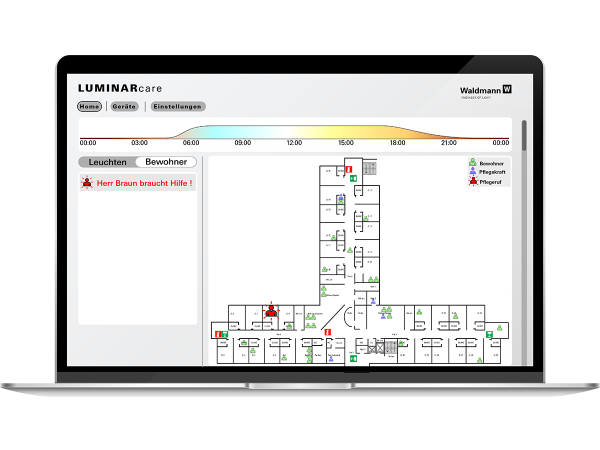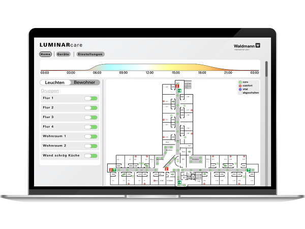 LUMINARcare wurde mit der Herbert Waldmann GmbH praxisnah mit konzipiert, durch enge Zusammenarbeit mit Pflegeeinrichtungen, Lichttechnikern und Nutzern. Es ist sowohl als systemischer Lösungsansatz für Pflegeheime gedacht als auch als Inspiration für zukünftige Lichtanwendungen in Kliniken, betreutem Wohnen oder sogar im privaten Umfeld.