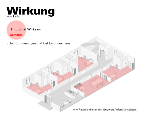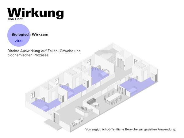 Im Zentrum steht ein modulares, Bluetooth-basiertes Netzwerk, das sich leicht in bestehende Infrastrukturen integrieren lässt. Es bietet individuell steuerbare Lichtszenarien, sensorgestützte Lichtverläufe, Lichttherapieoptionen sowie haptisch bedienbare Wearables. Zusätzlich ermöglichen mobile Geräte gezielte Anwendungen zur Sturzprophylaxe, zur Verbesserung des Tag-Nacht-Rhythmus und zur Förderung der Lebensqualität.