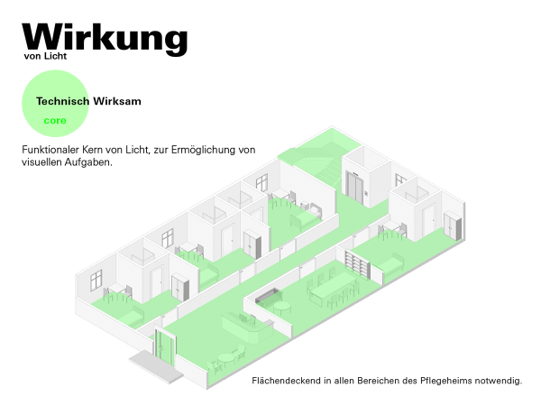 LUMINARcare ist ein innovatives Beleuchtungssystem, das speziell für Pflegeeinrichtungen entwickelt wurde, um technologische Effizienz mit menschlichem Wohlbefinden zu vereinen. Das System kombiniert biologisch wirksames Licht, funktionale Ausleuchtung und emotional gestaltete Szenarien in einer intelligenten, vernetzten Infrastruktur. Ziel ist es, nicht nur gesetzliche Anforderungen an Lichtqualität zu erfüllen, sondern auch das tägliche Leben von Pflegebedürftigen zu bereichern und Pflegekräfte aktiv zu entlasten.