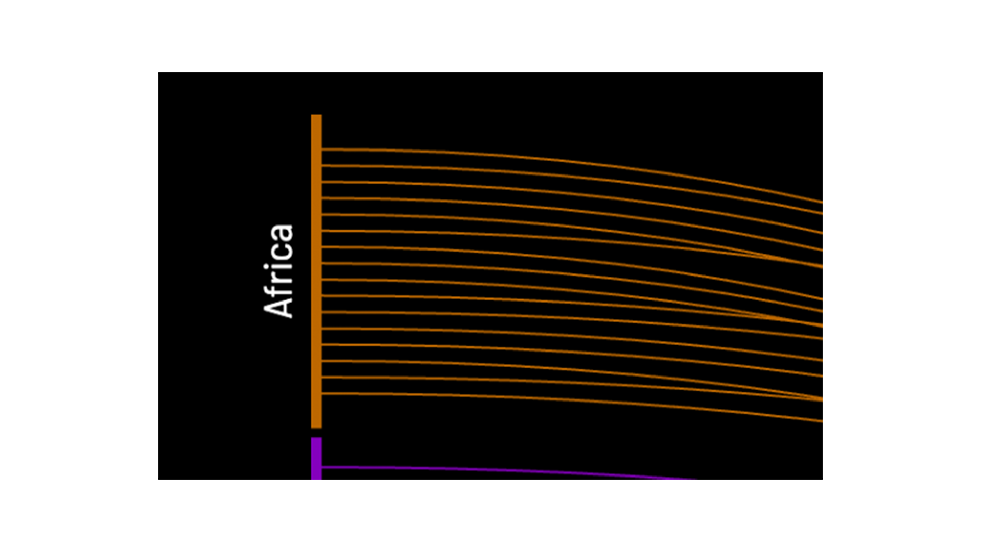 Wir haben die Kontinente farblich unterteilt - sowie ebenfalls sichtbar getrennt. Durch das Trennen durch zwei Faktoren werden einem Unterschiede schneller klar