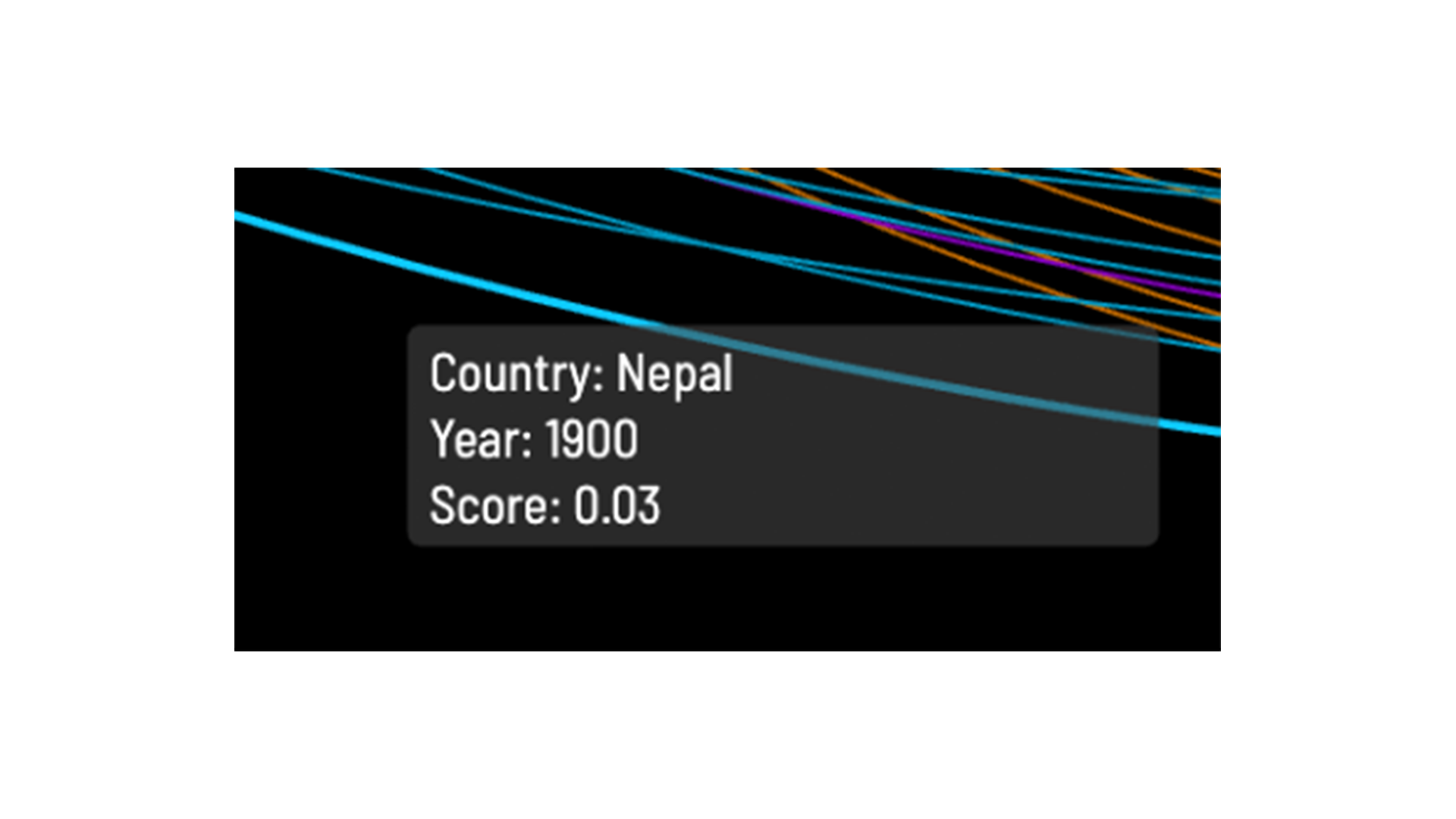 „Freedom of Expression“ umfasst dabei mehr als nur Meinungsfrienheit, denn sie schließt auch Pressefreiheit, künstlerischen Ausdruck und digitale Kommunikation ein. Besonders interessant sind dabei politische Umbrüche, historische Ereignisse oder kontinuierliche Verschiebungen in der Meinungsfreiheit, die sich in unserer Visualisierung wiederum gut nachvollziehen lassen.