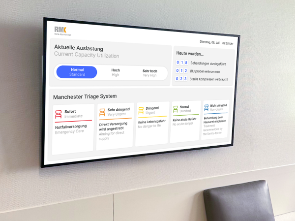 Um die Informationen des Armbands für das Personal ersichtlich zu machen, wurde ein Dashboard entwickelt. Ziel ist es damit, ein einheitliches und modernes Ökosystem zu schaffen, das mehrere parallele Softwaresysteme innerhalb der Notaufnahme ersetzt und die Bedienung vereinfacht.