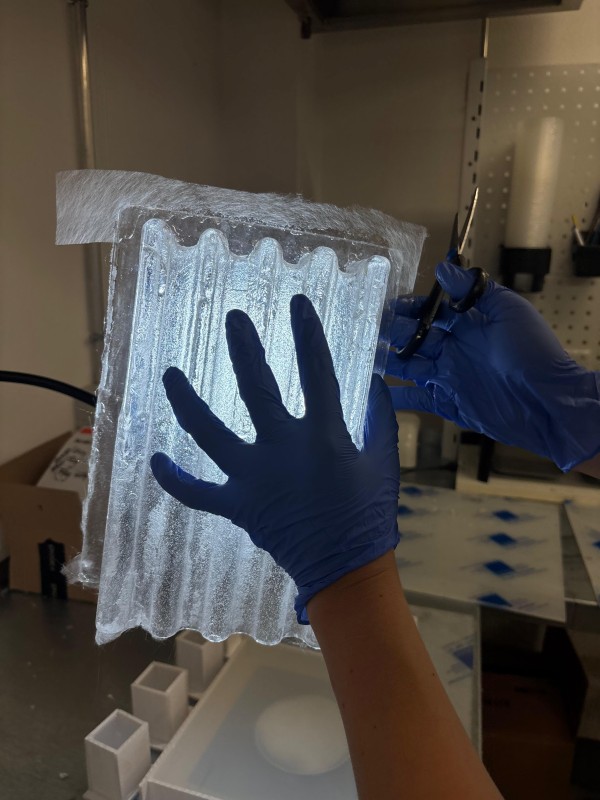 The lamp is made of glass‑fibre reinforced acrylic, which