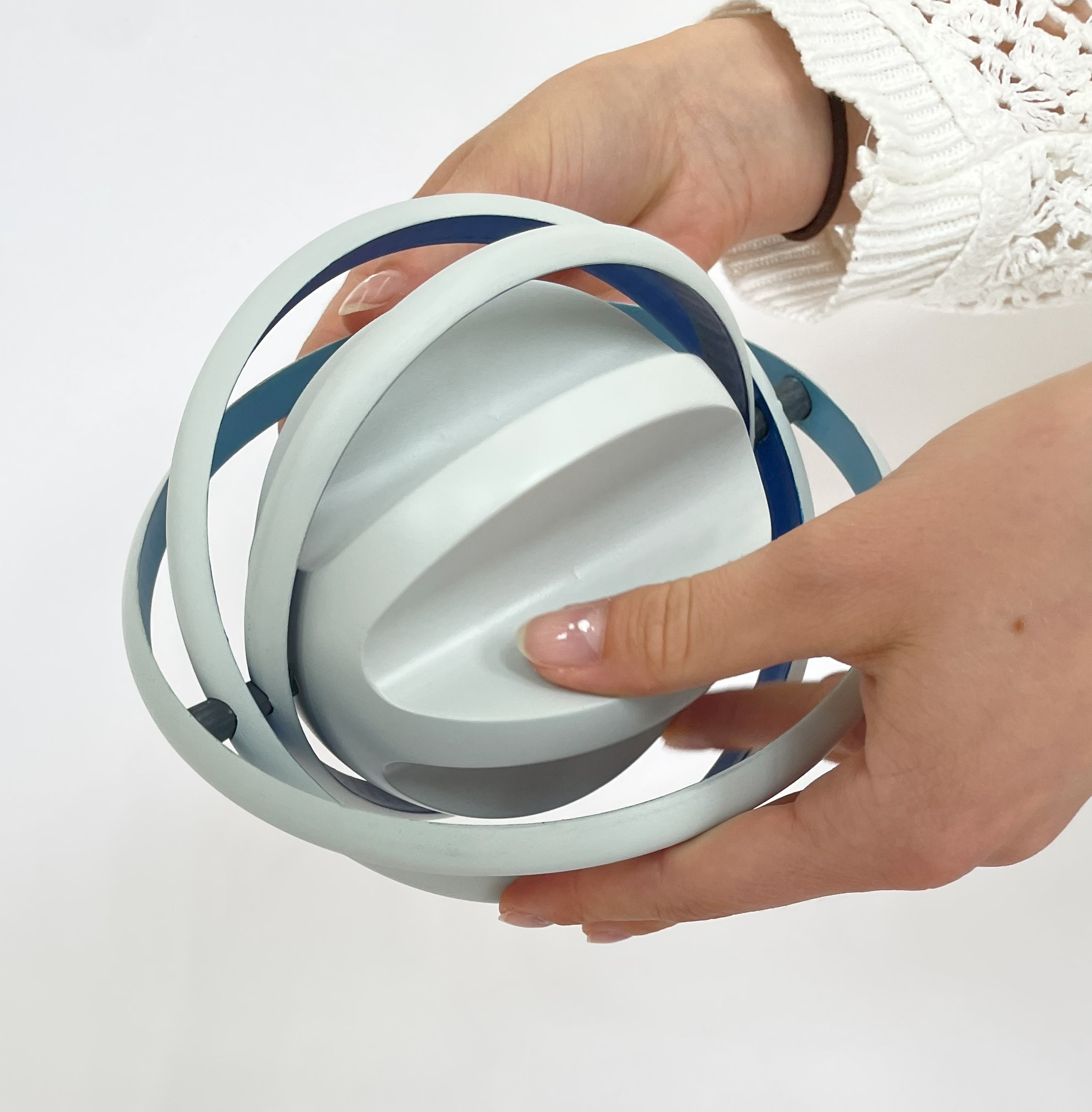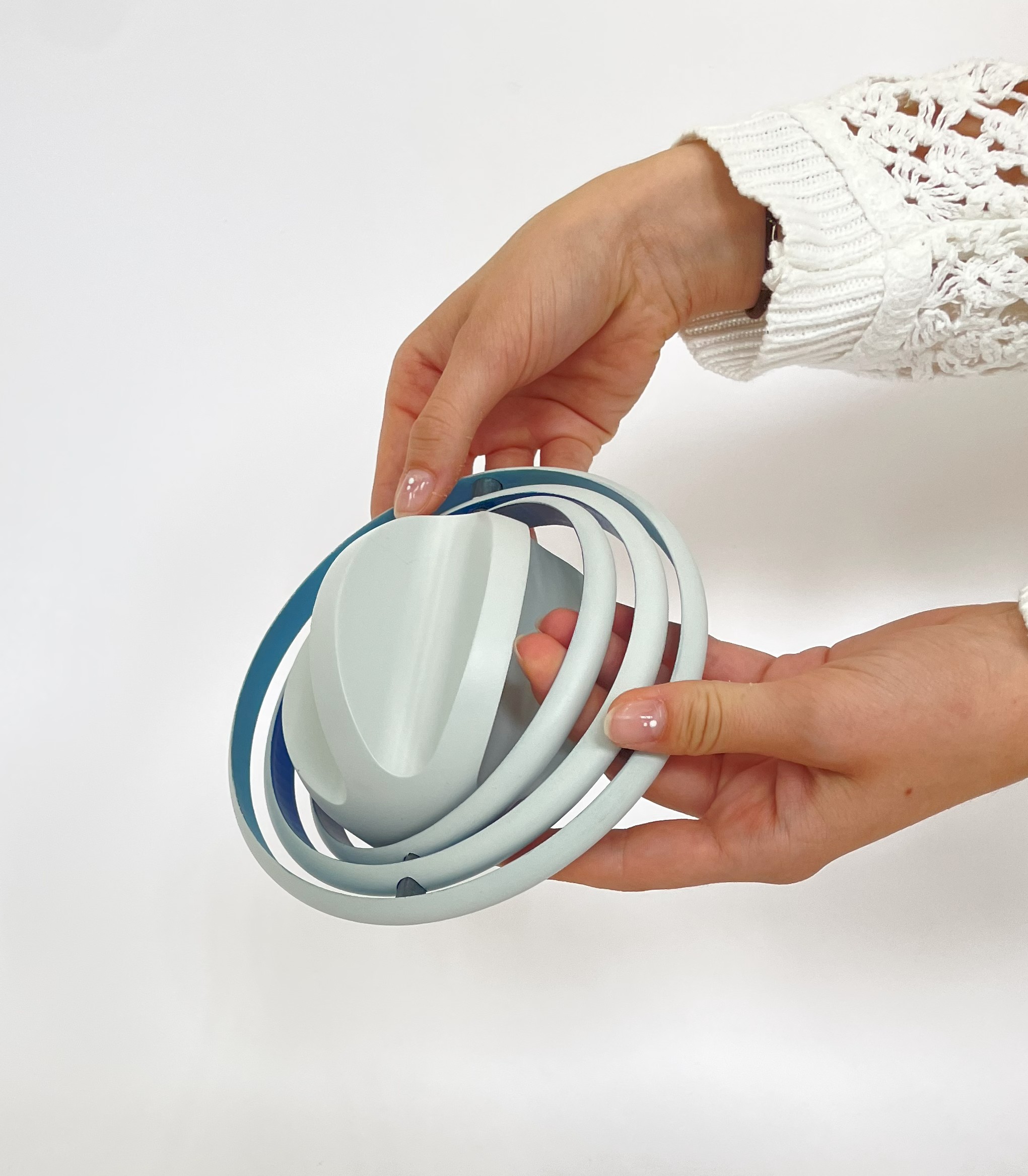 Verschiedene Abstufungen von Blau fordern auf die Ringe zu bewegen, um die Innenflächen besser erkenntlich zu machen.