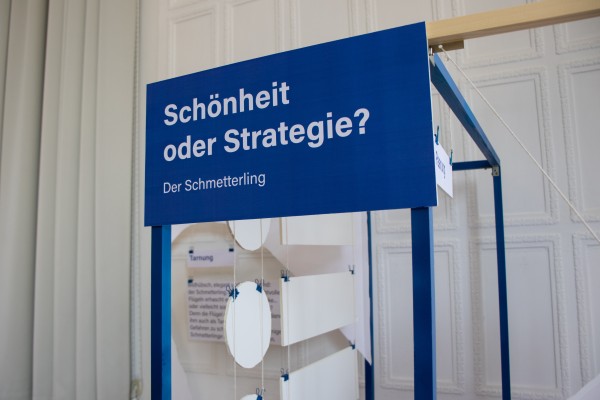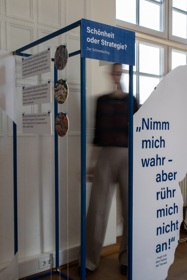 Unser Ausstellungsstück beschäftigt sich mit der Frage, ob die Farbenpracht von Schmetterlingen reine Schönheit oder clevere Überlebensstrategie ist. Unter dem Oberthema „View of Colors“ haben wir uns mit der Rolle von Farben im Tierreich auseinandergesetzt – am Beispiel des Schmetterlings.