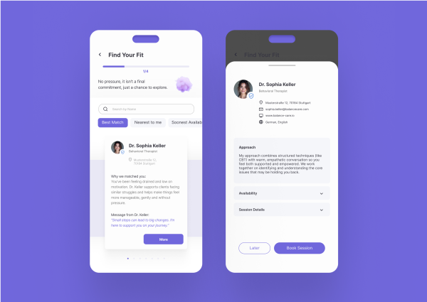 Therapy can feel intimidating, and many people who are struggling don’t know where to start. Therapists face time pressure and scattered tools. Sideby helps both. It’s a shared space where reflection, structure, and real support meet — before, during, and between sessions.