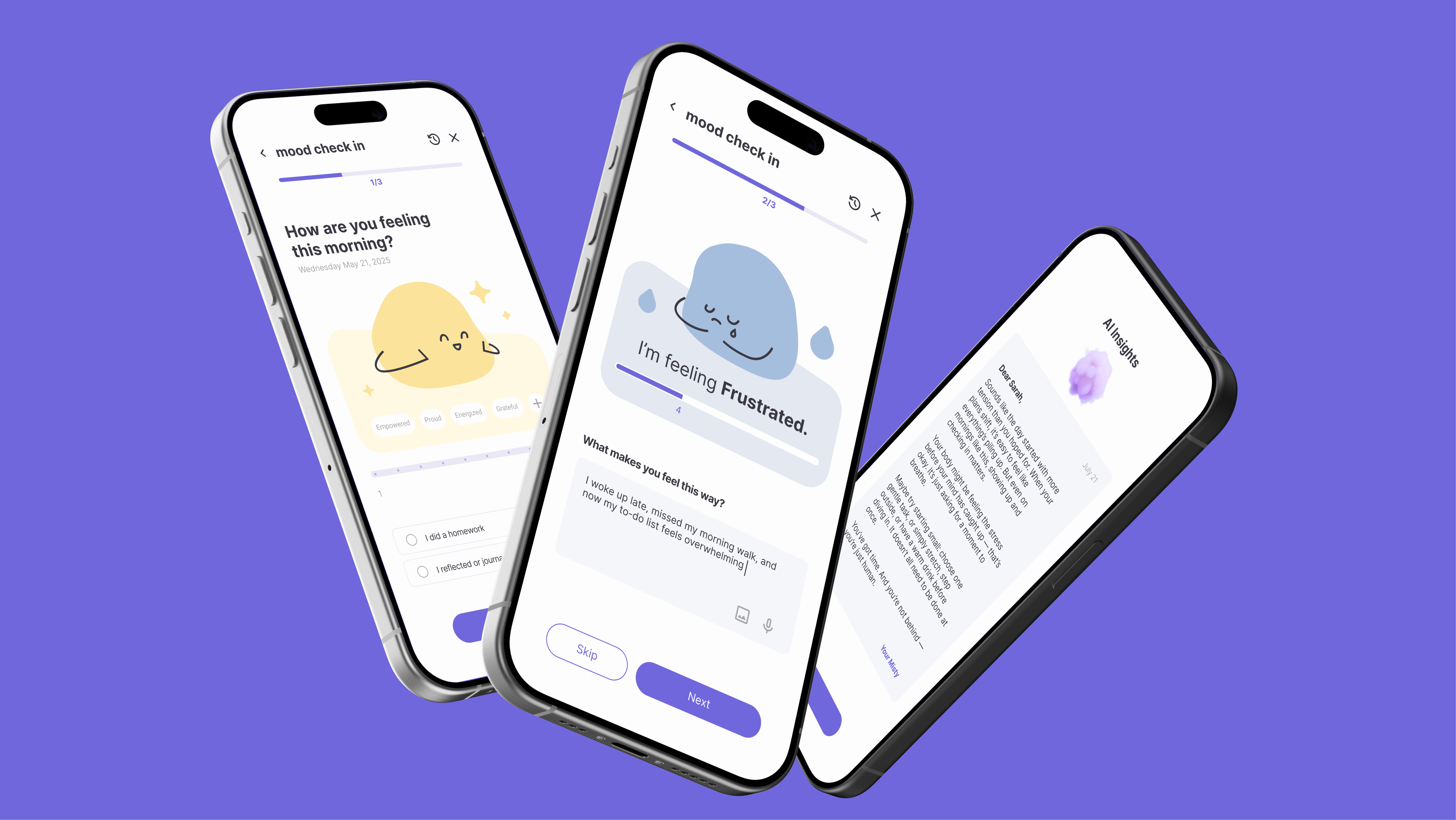 Daily emotions can be logged, and thoughts captured in a private journal. Over time, the AI identifies patterns and offers insights to support a deeper understanding of mental well-being and its possible underlying influences.