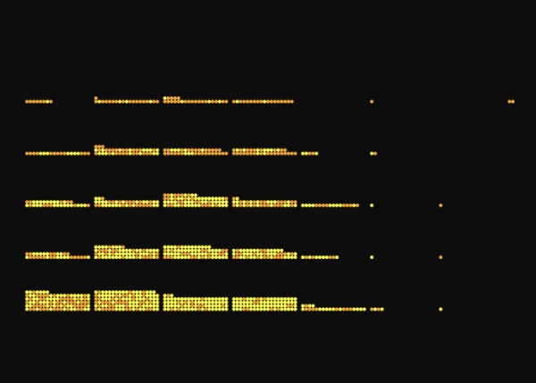Datenvisualisierung: Auseinandersetzung mit Form, Farbe und Ordnungsprinzipien, um Zusammenhänge in größeren Datenmengen sichtbar zu machen. Das Ergebnis ist ein programmierter, interaktiver Prototyp.
