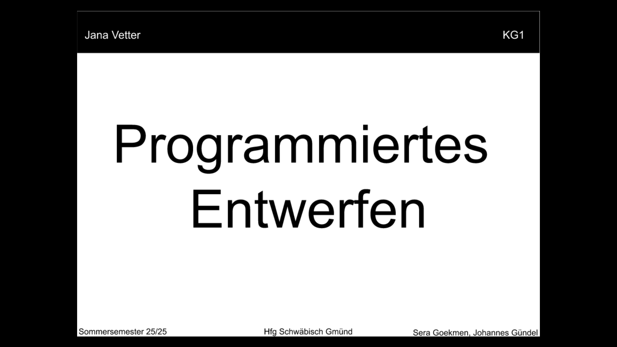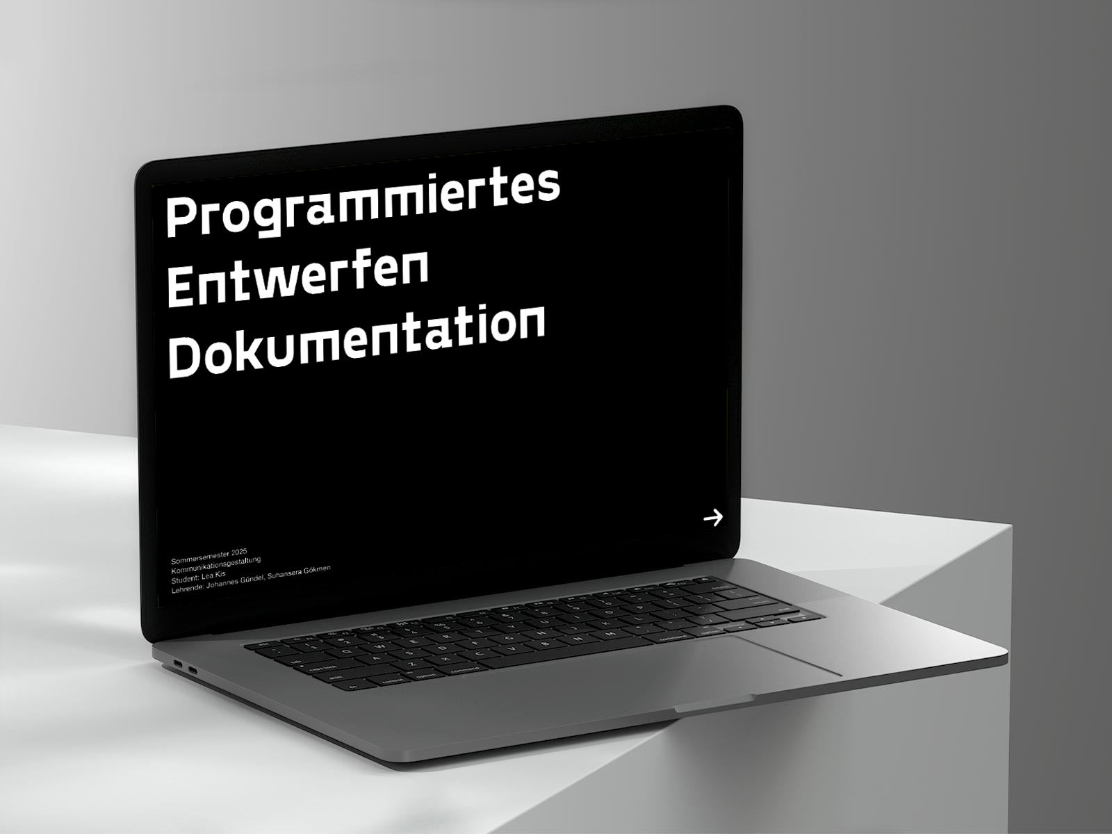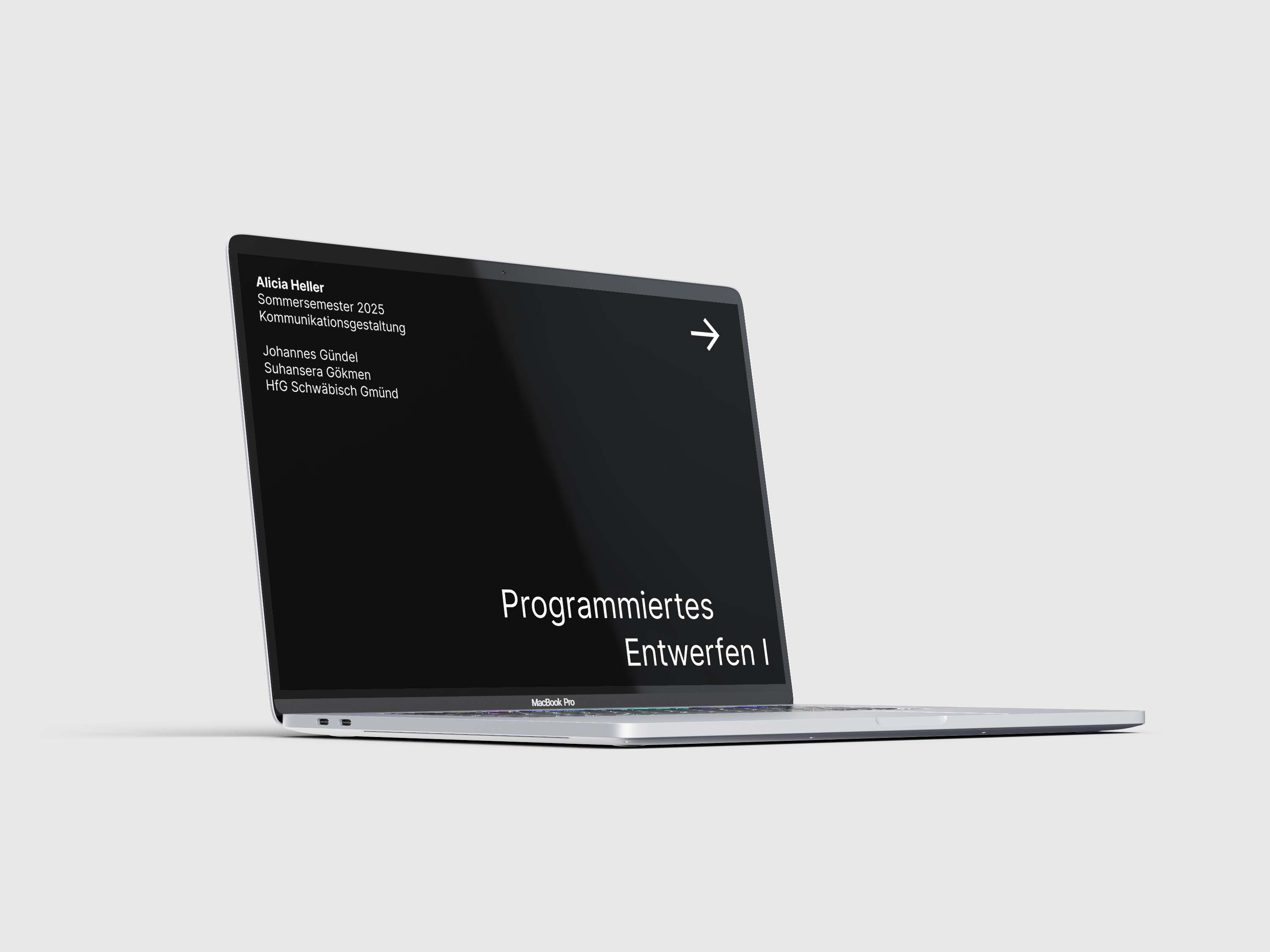 Schlagwortinteraktiv Die Geschichte digitaler Erinnerung … Analytisches GestaltungsprojektSG2 Fensterinstallation: der Engländer Exhibition DesignIG4, KG4 VoiceAction. Demokratie spielerisch … Bachelorarbeiten KommunikationsgestaltungKG7 Eine Wanderausstellung über die At … Bachelorarbeiten KommunikationsgestaltungKG7 Antisemitismus in Ulm Exhibition DesignIG4, KG4 Familienkutschen der Mittelklasse Interaktive Kommunikationssysteme 1IG2 Lichtspektrum – Ich sehe was, was d … Ausstellungsgestaltung 1KG3 .denkstoff Bachelorarbeiten KommunikationsgestaltungKG7 Studieren bei Professor Einstein - … Exhibition DesignIG4, KG4 Macro to Micro Interaktive Kommunikationssysteme 1IG2 Shilei's Wecker Einführung Gestaltungsschwerpunkte – Wecker-WorkshopIG1 RingGo Dreidimensionales Gestalten 1APG2 Programmiertes Entwerfen Dokumentat … Programmiertes Entwerfen 1 (KG)KG1 Programmiertes Entwerfen Programmiertes Entwerfen 1 (KG)KG1 Mondkalender Programmiertes Entwerfen 2 (KG)KG2 Kalender 2026 Programmiertes Entwerfen 2 (KG)KG2 Datenvisualisierung Tageslichtstund … Programmiertes Entwerfen 2 (KG)KG2 SCHACHMUSTER – Interaktive Lichess- … Programmiertes Entwerfen 2 (IG)IG2 Programmiertes Entwerfen 1 (KG) Programmiertes Entwerfen 1 (KG)KG1 Programmiertes_Entwerfen_Doku_SoSe2 … Programmiertes Entwerfen 1 (KG)KG1 Programmiertes Entwerfen 1 Programmiertes Entwerfen 1 (KG)KG1 Kalender Pegelstände Bodensee Programmiertes Entwerfen 2 (KG)KG2 Programmiertes Entwerfen Dokumentat … Programmiertes Entwerfen 1 (KG)KG1 Kalender 2026 Programmiertes Entwerfen 2 (KG)KG2 Datenvisualisierung KG2 Programmiertes Entwerfen 2 (KG)KG2 Programmiertes Entwerfen Programmiertes Entwerfen 1 (KG)KG1 Bahnenschwimmer Dreidimensionales Gestalten 1APG2 Jahreskalender 2026 Programmiertes Entwerfen 2 (KG)KG2 Programmiertes Entwerfen doku Programmiertes Entwerfen 1 (KG)KG1 Sonnenstundenkalender 2026 Programmiertes Entwerfen 2 (KG)KG2 Jahreskalender – Vogelzugzeiten Programmiertes Entwerfen 2 (KG)KG2 Programmiertes Entwerfen Dokumentat … Programmiertes Entwerfen 1 (KG)KG1 Kalender 2026 – Wellenlinien Programmiertes Entwerfen 2 (KG)KG2 Mondkalender Programmiertes Entwerfen 2 (KG)KG2